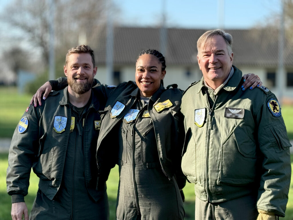 CS-medlemmerne Simon, Binta og Glenn, der alle er udstationerede på NATO Air Base Geilenkirchen. Foto: Julie Walton.