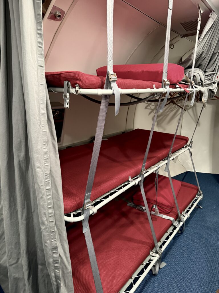 I flyets bagerest del kan besætningen slappe af. Her ses senge, hvor de kan sove.