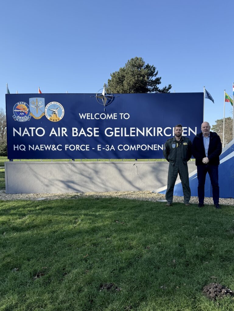 Efter masser af snakke, en del kaffe, god mad og en rundvisning på NATO Air Base Geilenkirchen har Ronni Pedersen og Arne Elvis Fuglsang fået indsigt i medlemmernes aktuelle udfordringer – og lidt hjemmearbejde. Ronni Pedersen er veltilfreds med besøget.