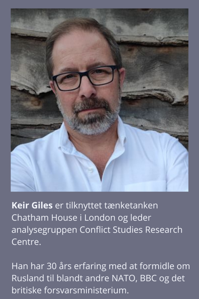 ”Nej”, lyder svaret fra den britiske ruslandsekspert, Keir Giles, der er tilknyttet Chatham House i London, og som CS taler med kort før nytår: