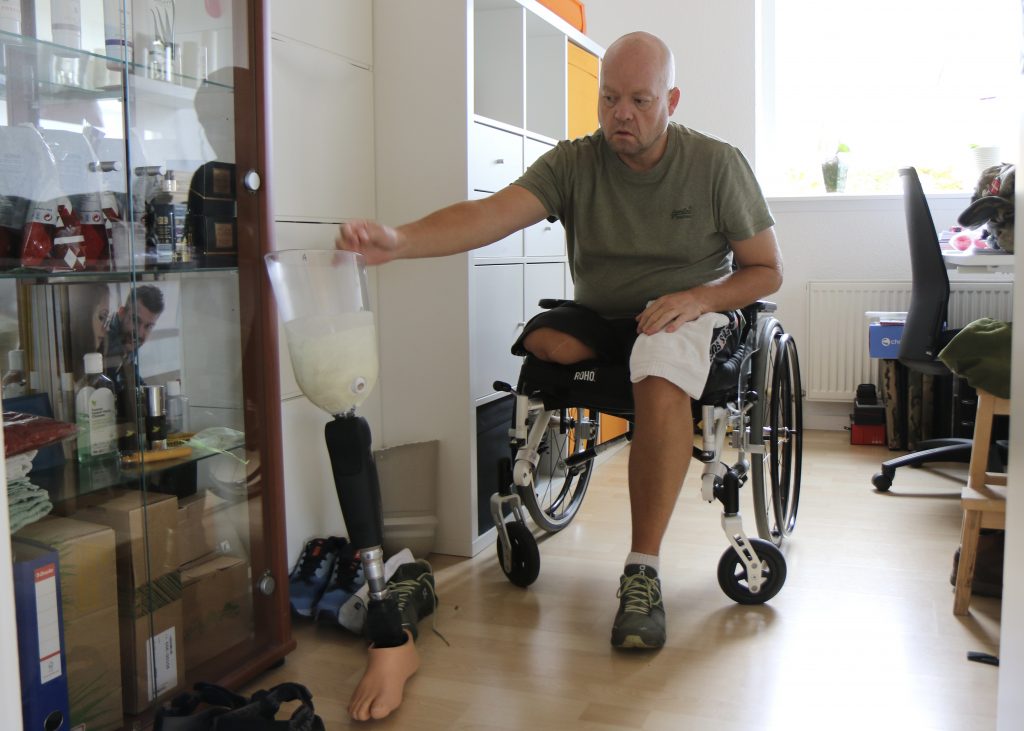 – Jeg har nogle enkelte fantomsmerter tilbage nede i foden, og jeg har haft krampe i min højre læg, som jo så ikke længere er der. Det er fuldstændigt mærkeligt, for jeg kan jo se, at der sidder et kunstigt ben, hvor min læg plejede at være.