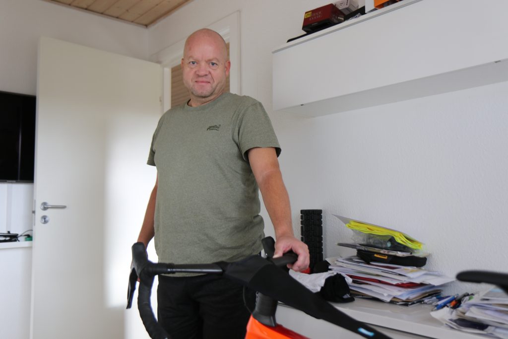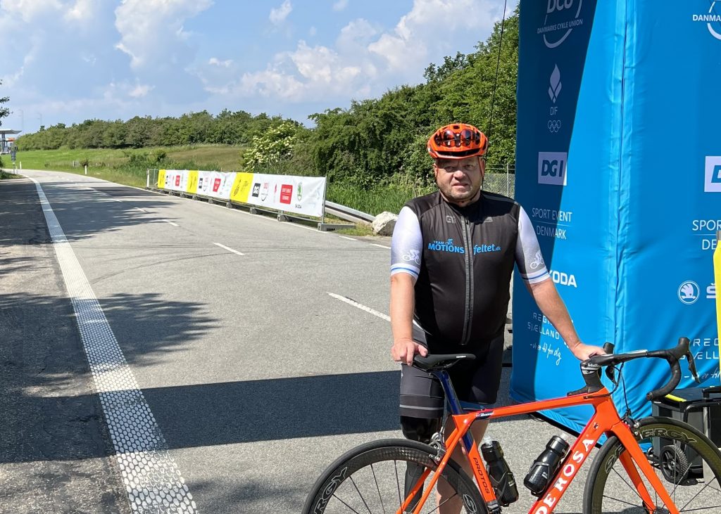 Per Jørgensen med sin racercykel i sommer i år: “Da jeg blev amputeret, satte jeg mig for at ville cykle over Storebælt i forbindelse med Tour De France. Det skulle være mit mål.” Privatfoto.