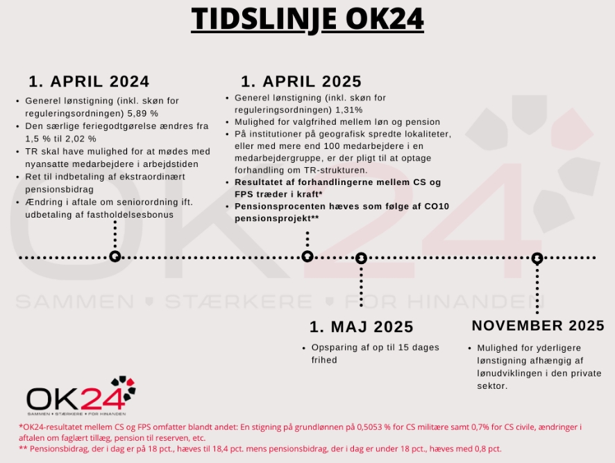 Her kan du få et overblik over, hvornår de forskellige elementer i OK24-forliget på statens område træder i kraft:
